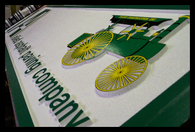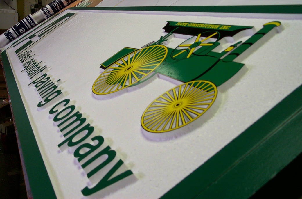Painted & sandblasted sign using high density foam board on painted wood posts